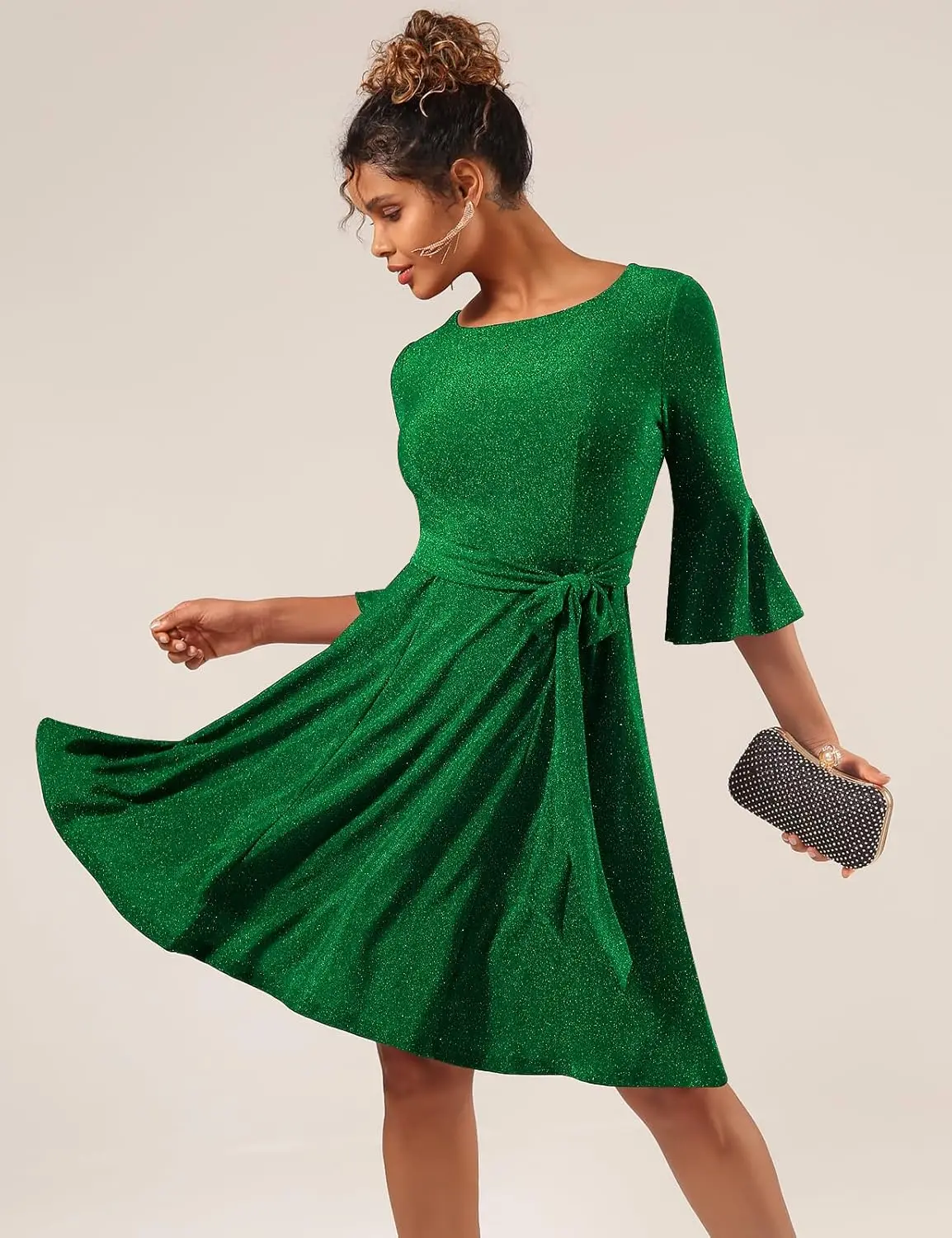 Vintage Women's 2025 Summer Knee-Length Ball Gown Weddings Cocktail Tea Parties Graduation Chiffon Fabric Natural Waistline Bell